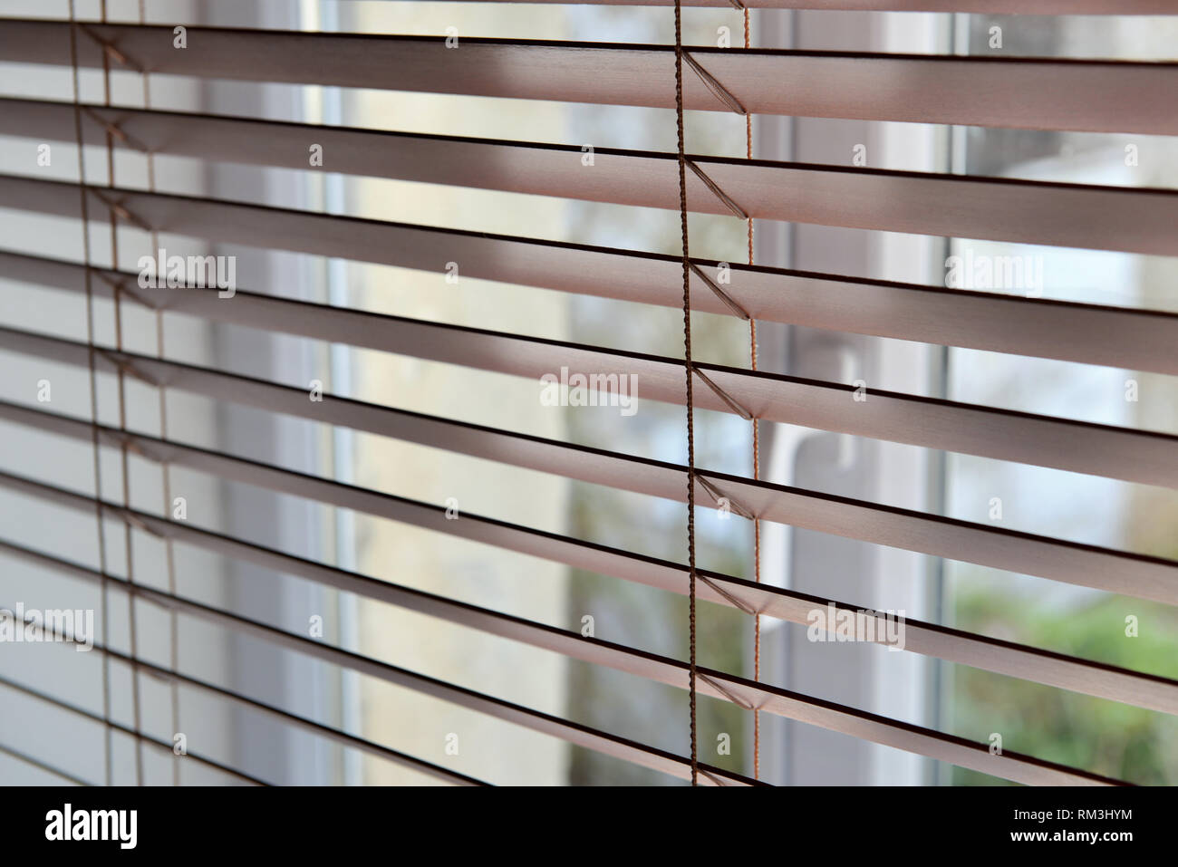 Close On A Venetian Wooden Blinds In Front Of A Window Stock Photo Alamy